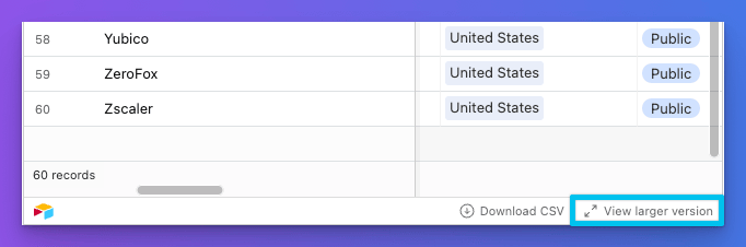 This interactive list includes up-to-date information on current public companies, those delisted or shut down, and firms taken private via M&A. You can easily play around with the data in Airtable with or without an account!
