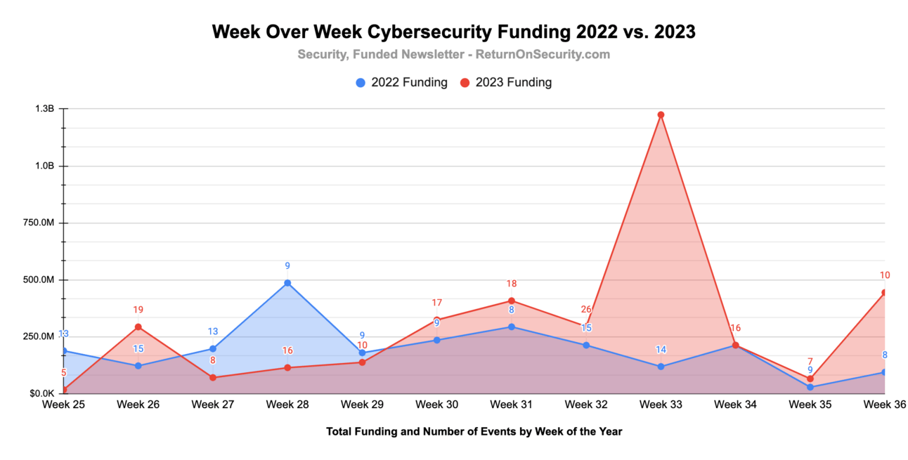 Funding is up >64% YoY this week as 2023 continues to rebound from the bottom of 2022.