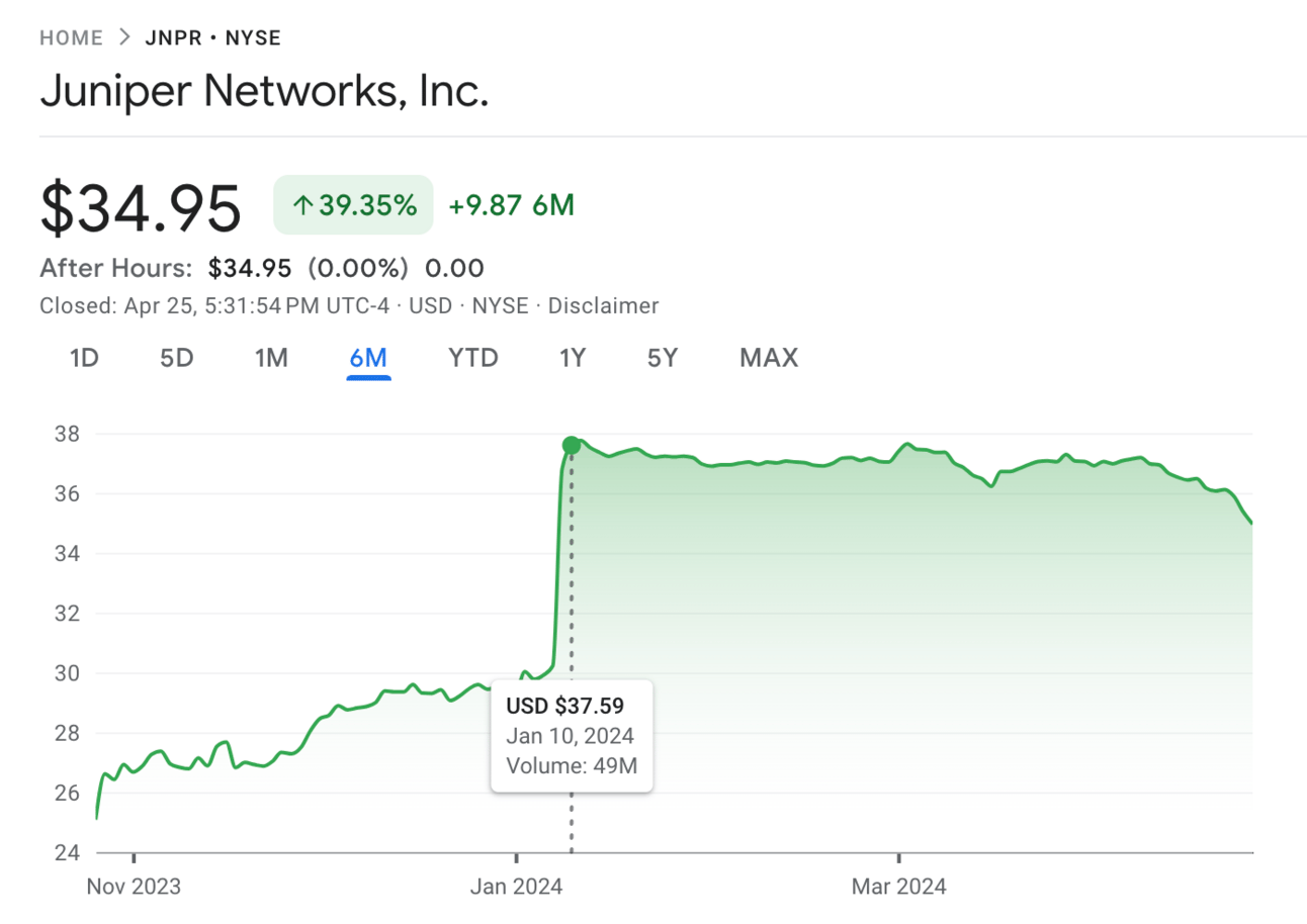 The income numbers don’t look great, but the operational numbers do. This would make sense because, as you may remember from issue #126 back in January, Juniper is set to be acquired by HPE for around $14 billion. All of this signals that Juniper is trying to retain talent and remain attractive as an acquisition target.