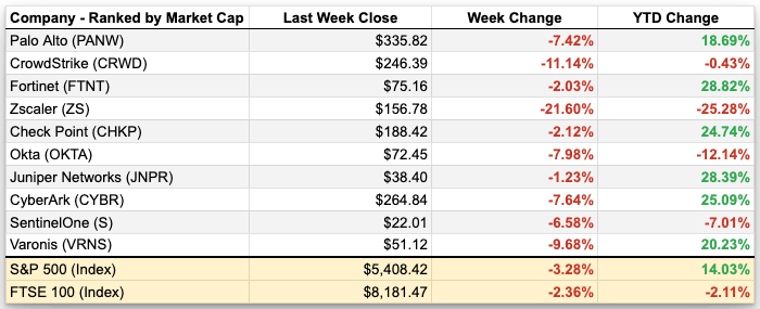 The cybersecurity market and the broader tech-heavy S&P 500 index all saw red last week with a big sell-off.