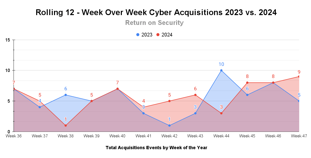 Mergers and acquisitions have also continued their ripping pace these last few weeks. It’s been a noticeably quieter year on the M&A front in cyber in terms of transaction volume, but M&A dollars have surpassed $41 billion (compared to $40 billion last year).