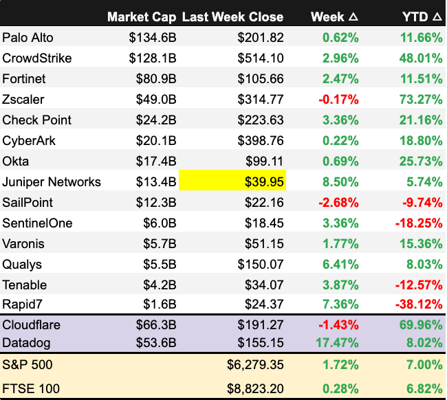 Juniper Networks exited the stock market at $39.95 per share on July 1st, following the U.S. Department of Justice (DOJ)'s decision to settle its antitrust lawsuit against HPE's $14 billion all-cash acquisition (the second-largest M&A deal in cybersecurity history).
