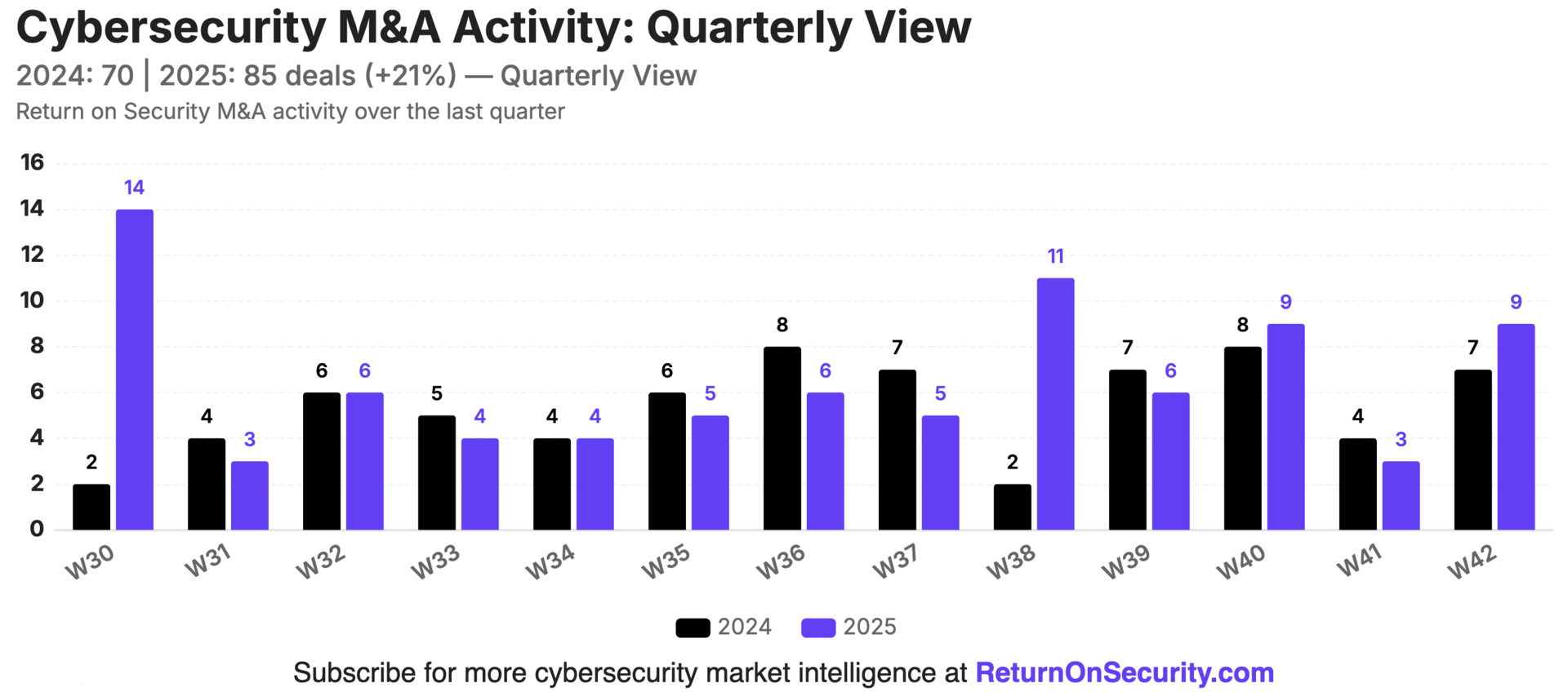 M&A activity jumped right back up this week, pushing up the rolling average of 6 acquisitions a week. We are now just 10 acquisition short of matching the same volume as all of 2024.