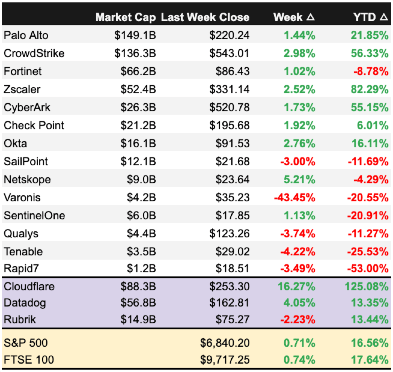 Earnings reports from last week: $CHKP ( ▲ 0.61% ), $TENB ( ▼ 1.16% ), $VRNS ( ▲ 0.45% )