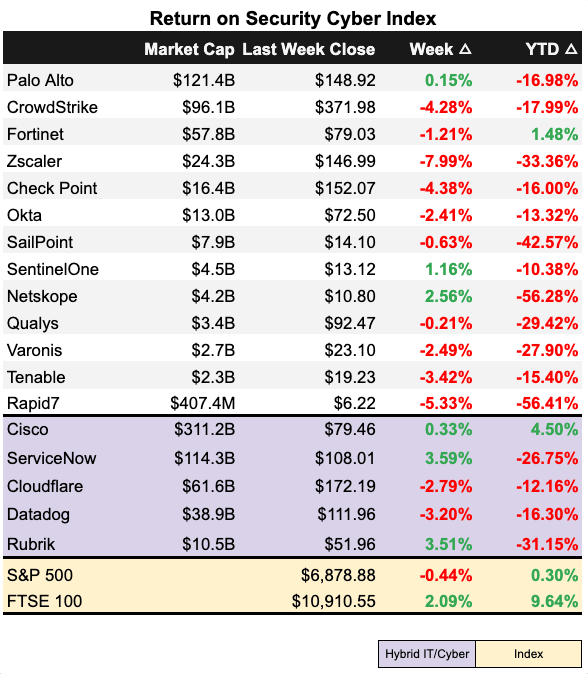 The good news, at least, is that the public cyber companies have rebounded about halfway from their precipitous fall in the prior week. If you missed last week’s issue, I covered my take on all of that in the opener.