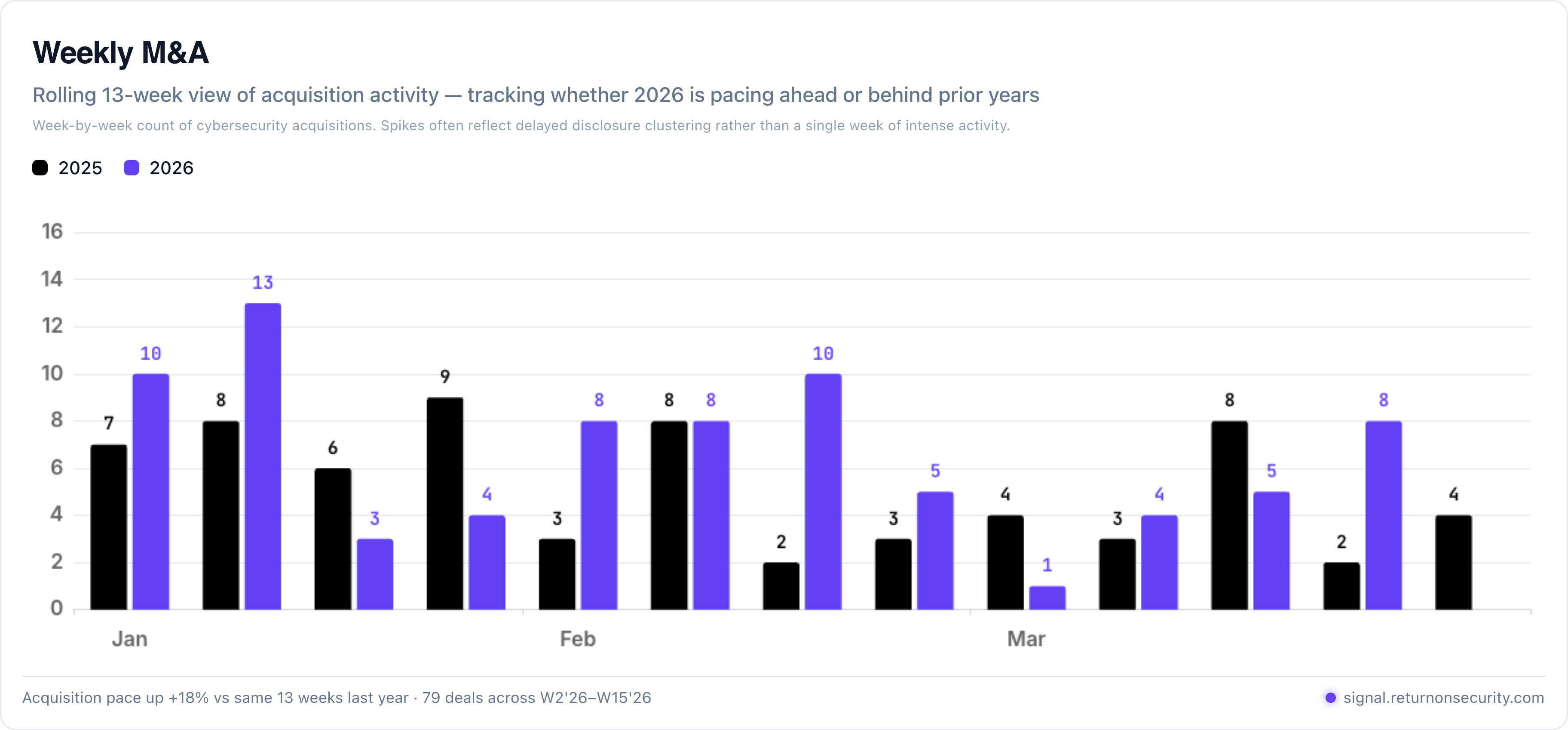 Post-Conference Slowdown: Funding dropped 91% week-over-week ($920M to $78.5M), which is the typical post-conference exhale. Companies will time new announcements in an attempt for maximum RSA visibility, but it’s the equivalent of yelling into the void. If you’re not the biggest funding round, largest acquisition, or you’re not in the RSA Innovation Sandbox, you’ll likely fall on over-stimulated eyes and ears. Timing can mean a lot in an industry like that.
