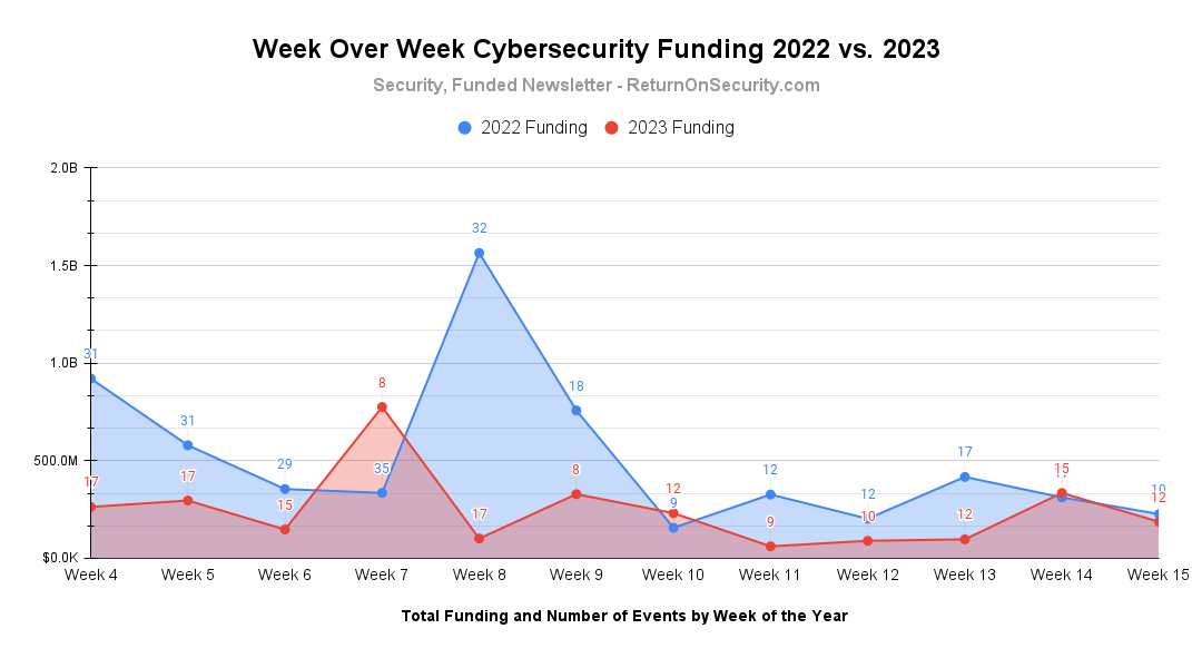 Cybersecurity funding in the first two weeks of Q2 2023 are remaining very consistent YoY. Let's see if there is a spike over the next few weeks, thanks to the start of the summer conference season.